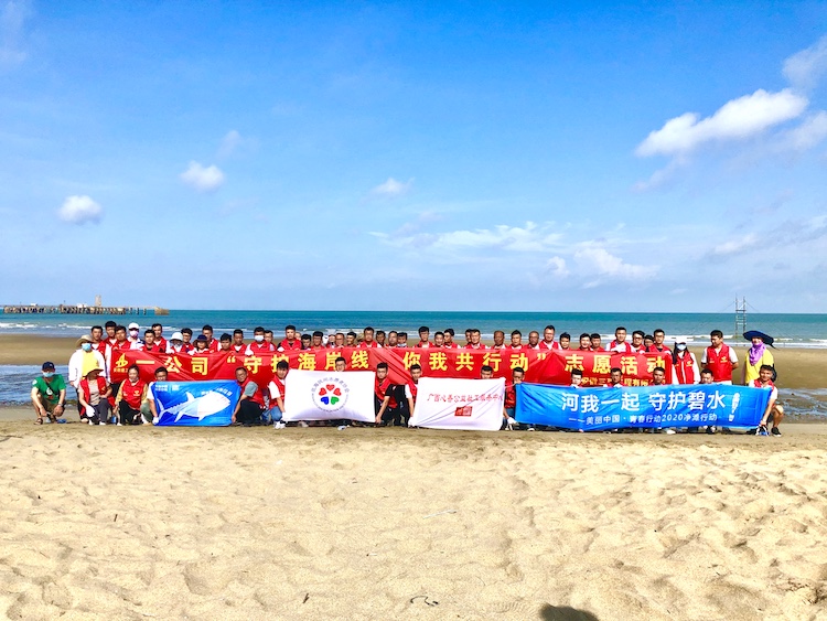 5月30日上午,一公司黨支部、團支部攜手廣西心香公益、北海民間志愿者協會在北海市冠頭嶺海灘開展“守護海岸線、你我共行動”凈灘志愿活動。一公司海南項目黨支部全體黨員、北海、湛江、陽江、漳州、文昌等地項目青年合計66人及部分當地志愿者一同參加此次活動,活動共清理海灘垃圾220公斤。