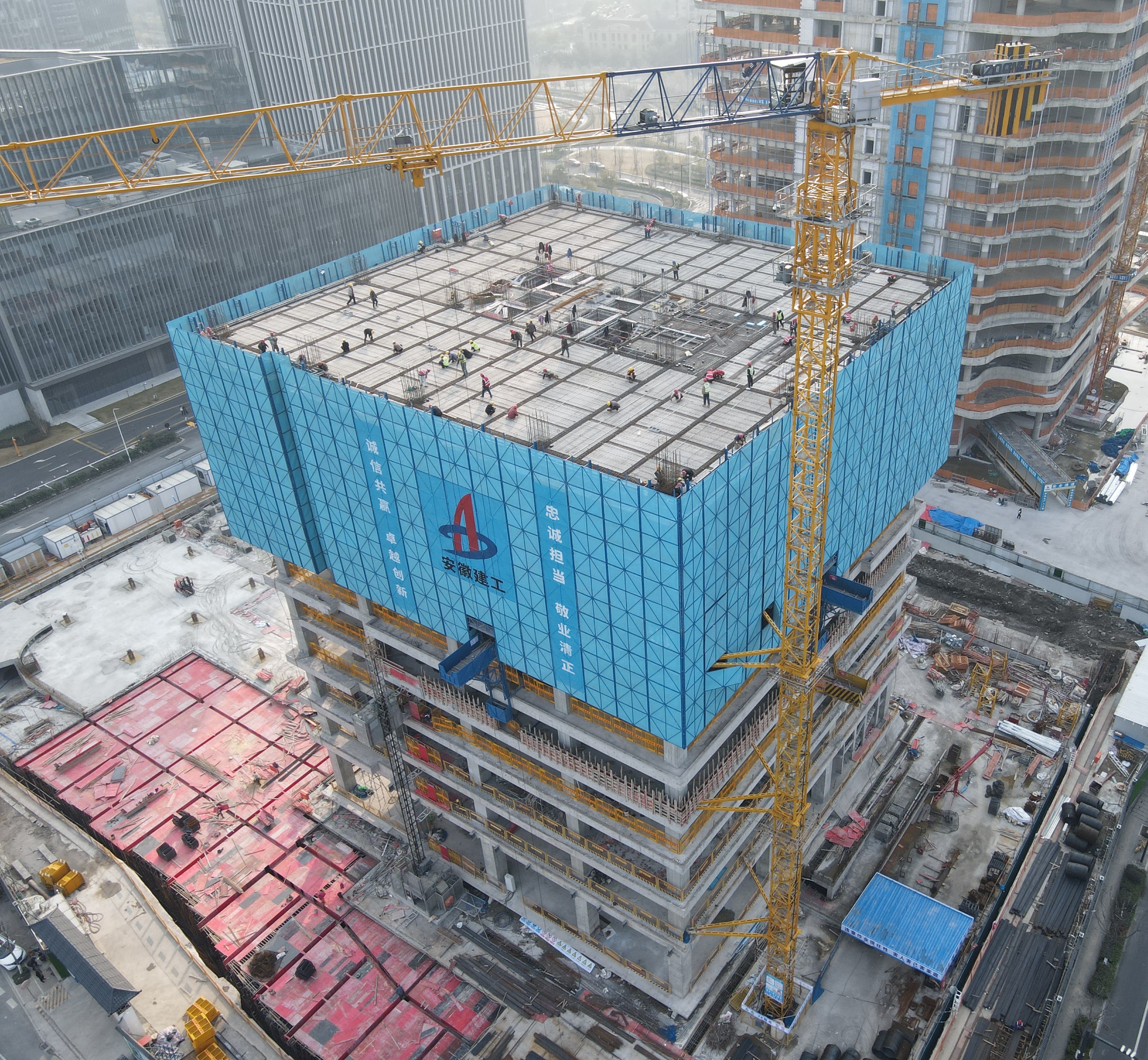 安徽建工集團控股有限公司三屆二次職代會暨2025年工作會議于2月9日至12日在合肥勝利召開。會議閉幕后,建工三建所屬各項目全面貫徹落實集團職代會暨工作會議精神,錨定全年目標任務,聚焦“八個更大突破”和“八個方面重點工作”,以高度的責任感、使命感和飽滿的工作熱情乘“巳”而上,搶抓施工黃金期,奏響大干快上“進行曲”,全力跑出“加速度”,奮力奪取項目建設“開門紅”。