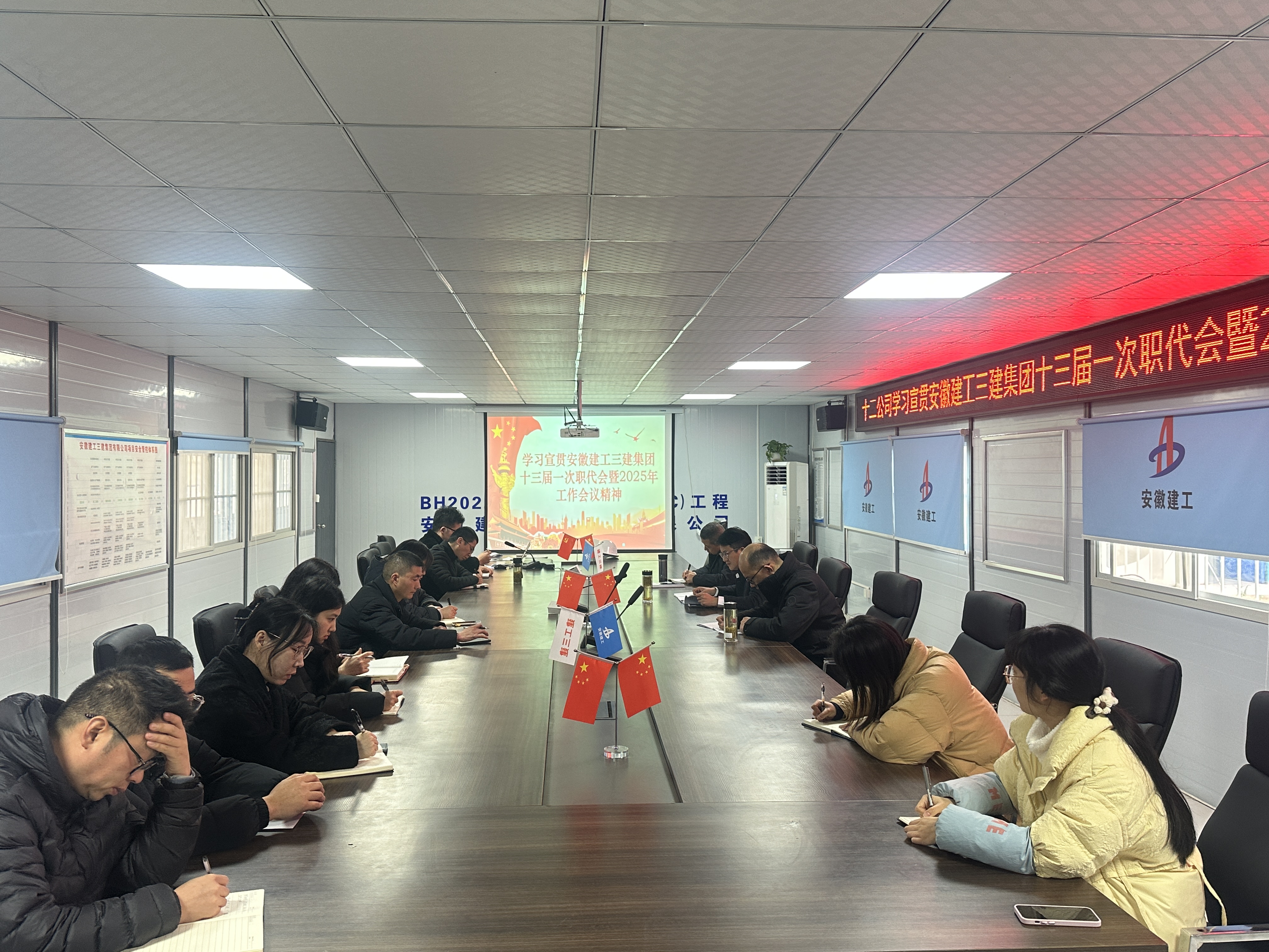 近日,安徽建工集團控股有限公司三屆二次職工代表大會暨2025年工作會議和安徽建工三建集團有限公司十三屆一次職代會暨2025年工作會議勝利召開。會后,建工三建所屬各單位迅速掀起學習宣貫熱潮,確保兩級職代會精神傳達到每一位職工,進一步統一思想、凝心聚力,推動公司高質量發展,為集團轉型發展、高質量發展、大發展貢獻力量。